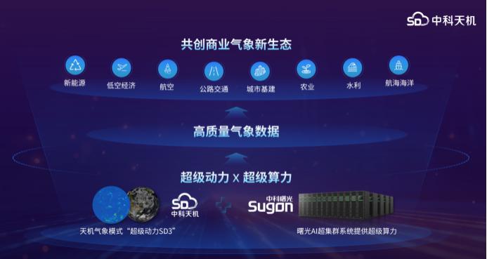 在 AI 计算开放架构的赋能下,中科天机将“超级动力 SD3 ”核心算法与中科曙光 AI 超集群的“超级算力”紧密结合,成功攻克了气象数据领域高分辨率模拟的“灰区”与时效性两大世界级难题。