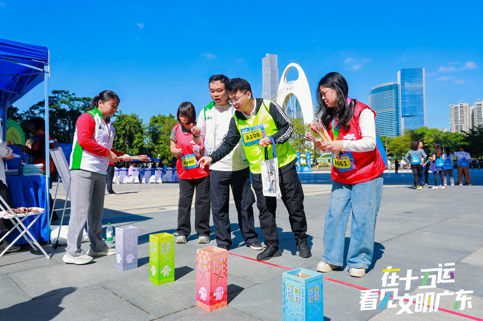 沿途设置的多个互动体验区吸引了众多市民参与。文明交通宣传区通过飞行棋游戏普及交通安全知识;爱国卫生宣传区的“垃圾分类,精准投中”“防蚊灭蚊,重锤出击”两个游戏寓教于乐,传播环保与健康理念;文明礼仪宣传区则通过主题合影、志愿承诺、问答盲盒等形式,鼓励市民积极参与志愿服务,共建文明城区。新时代文明驿站打卡点的“眼疾手快”互动游戏,让市民在趣味挑战中体验全运魅力。