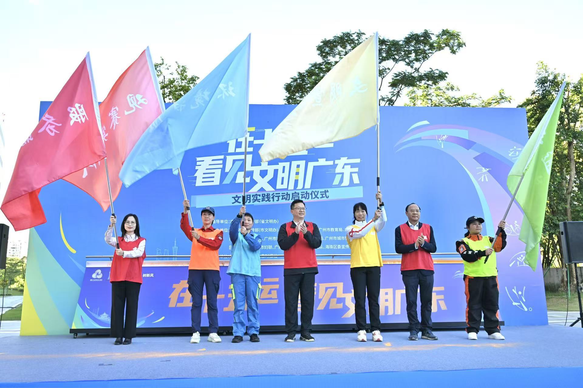 珠江潮涌,文明风劲。11月5日上午,“在十五运,看见文明广东”文明实践行动启动仪式在广州海珠区阅江路“最美7公里”路段举行。本次活动在广东省委宣传部(省文明办)指导下,由广州市委宣传部(市文明办)、海珠区委宣传部联合多个部门共同组织。通过“运动+文明+环保”的创新形式,将十五运会“绿色、共享、开放、廉洁”的理念与广州“文明之城”“志愿之城”的城市特质深度融合,为即将到来的第十五届全国运动会营造“人人参与、大家共享”的文明社会氛围。